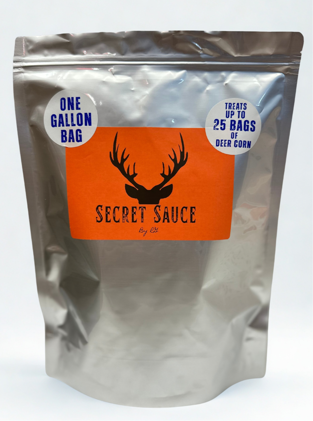 This 1 Gallon Size Bag of Secret Sauce by RG will treat up to 25 bags of deer corn.