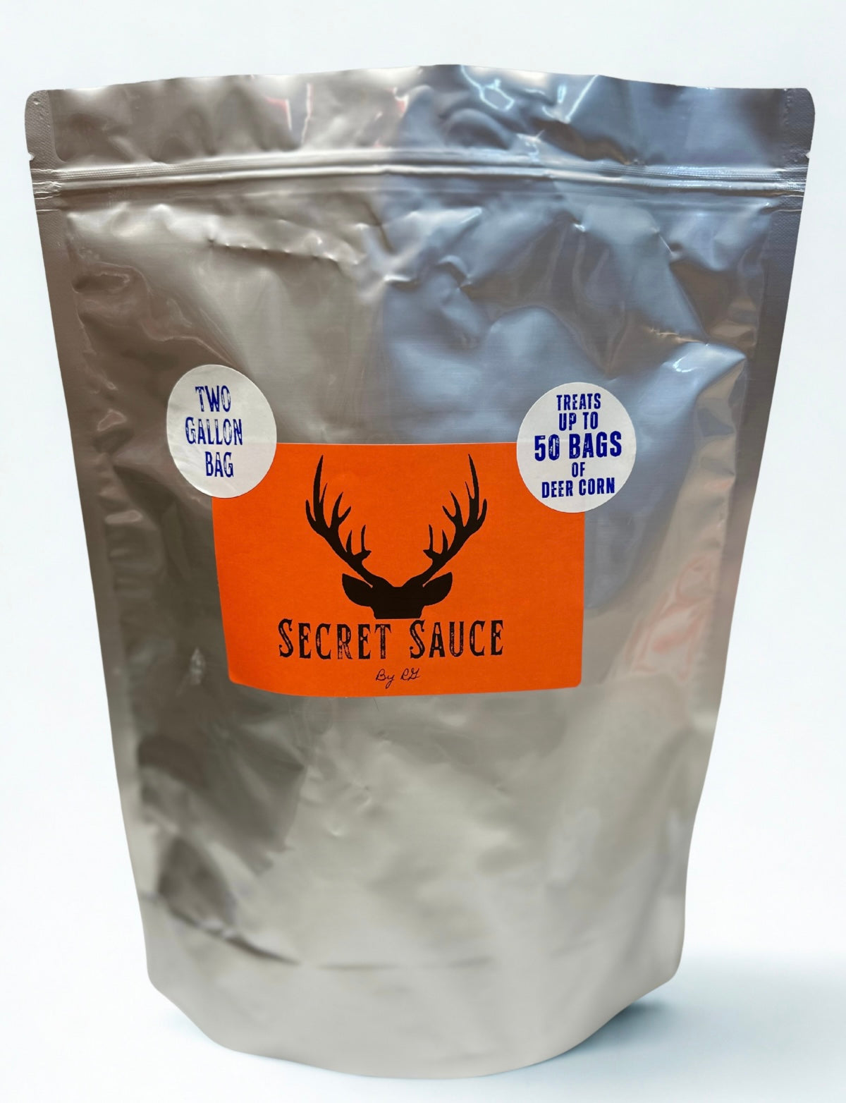 This 2 Gallon Size Bag of Secret Sauce by RG will treat up to 50 bags of deer corn.